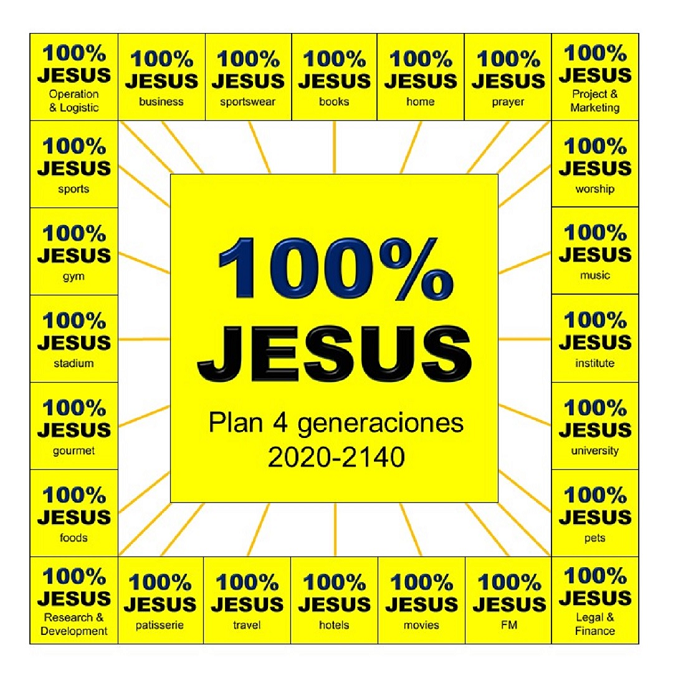 Centro Mundial de Emprendimiento 100% JESÚS Como parte de este estilo de vida, desde el 2020 estamos creando un centro de negocios enfocado en productos y servicios para satisfacer las necesidades cristianas de la sociedad; a través de un modelo de negocio basado en 20 empresas y áreas de apoyo, con el objetivo global de tener presencia en 100 países, en un total de 400 ciudades. Aquí puede encontrar enlaces a nuestros productos y servicios, disponibles a través de las principales plataformas alrededor del mundo, en más de 60 idiomas. 100% JESUS es un estilo de vida, libros, música, ropa y más.